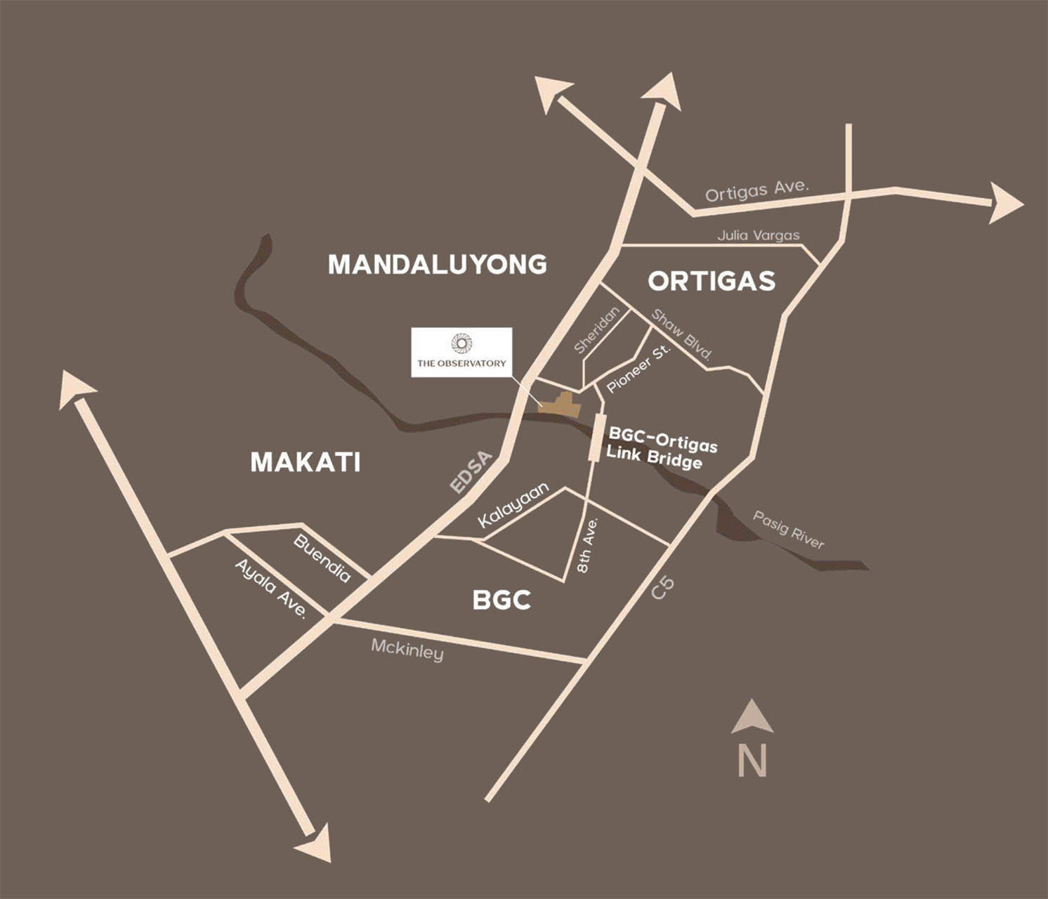 Strategically located at the true center of Metro Manila, THE OBSERVATORY project will rise within the Mandaluyong-Pioneer Central Business District Zone and at the middle of three major Central Business Districts.